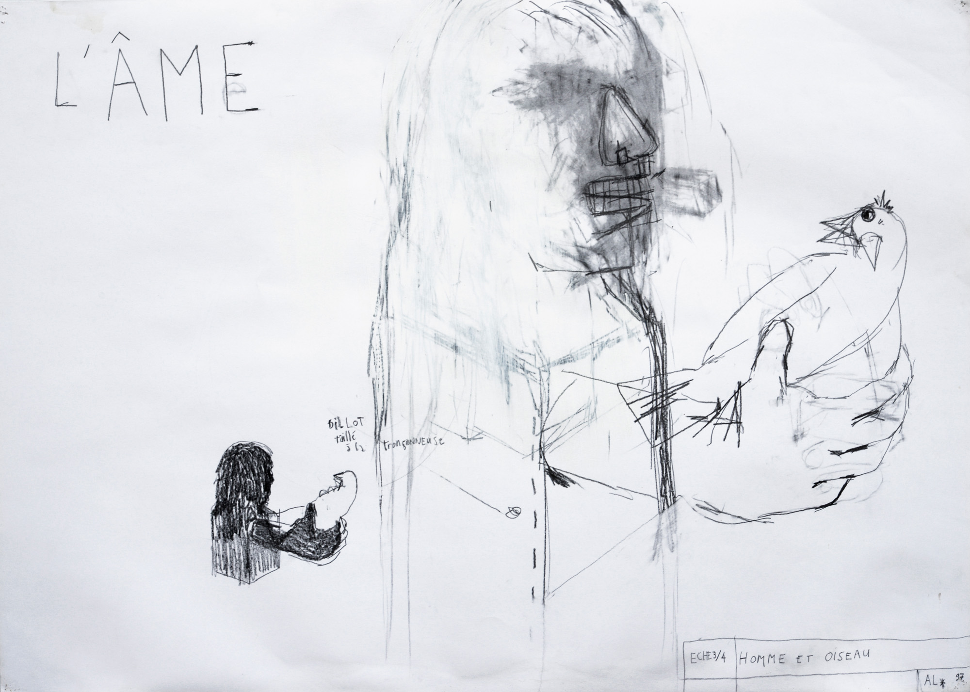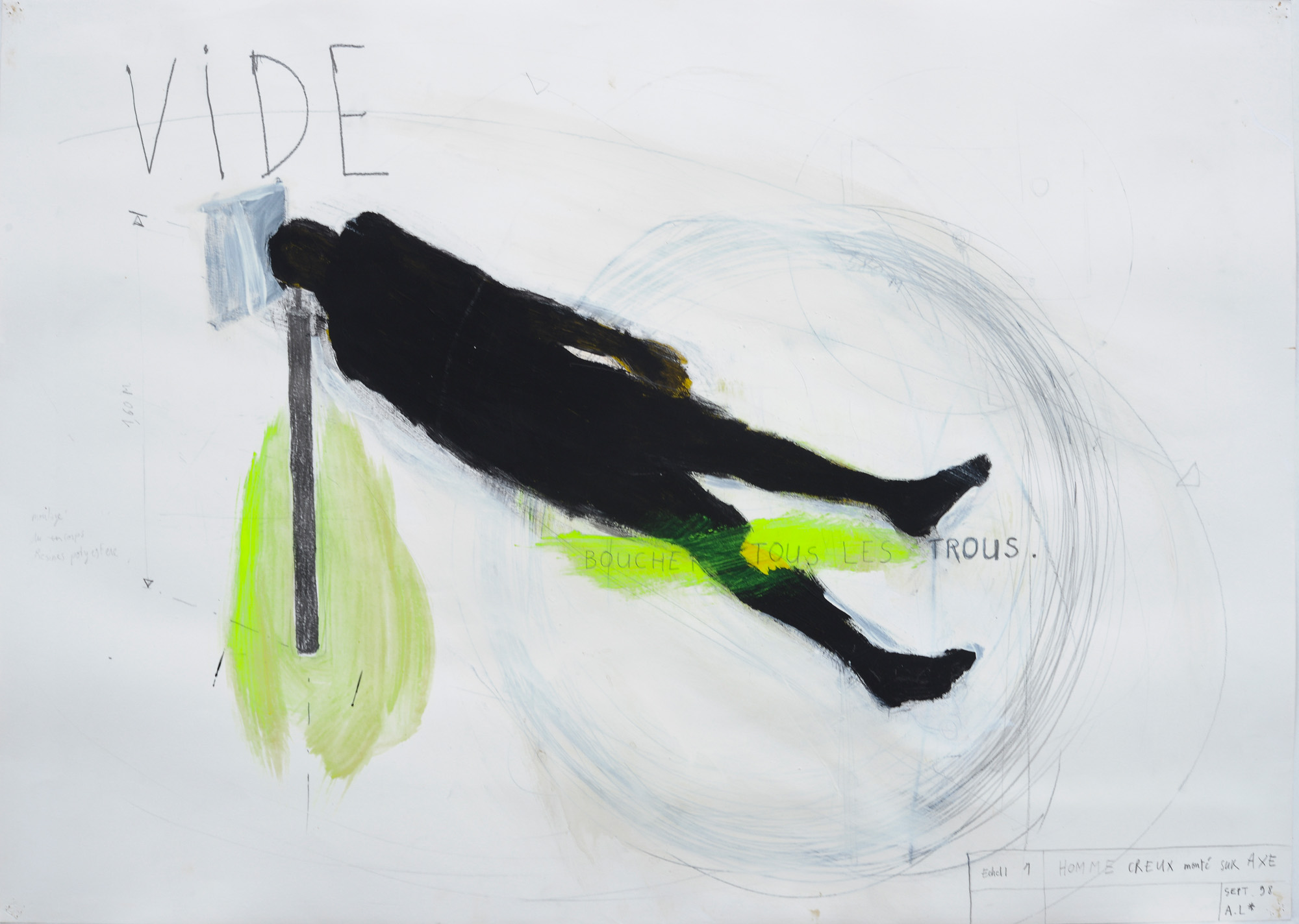 Techniques mixtes sur papier : acrylique, craie grasse, mine de plomb, peinture Glycéro.