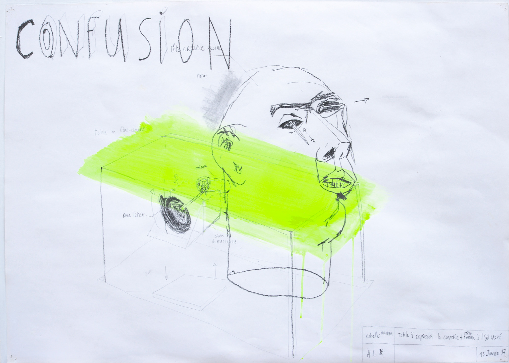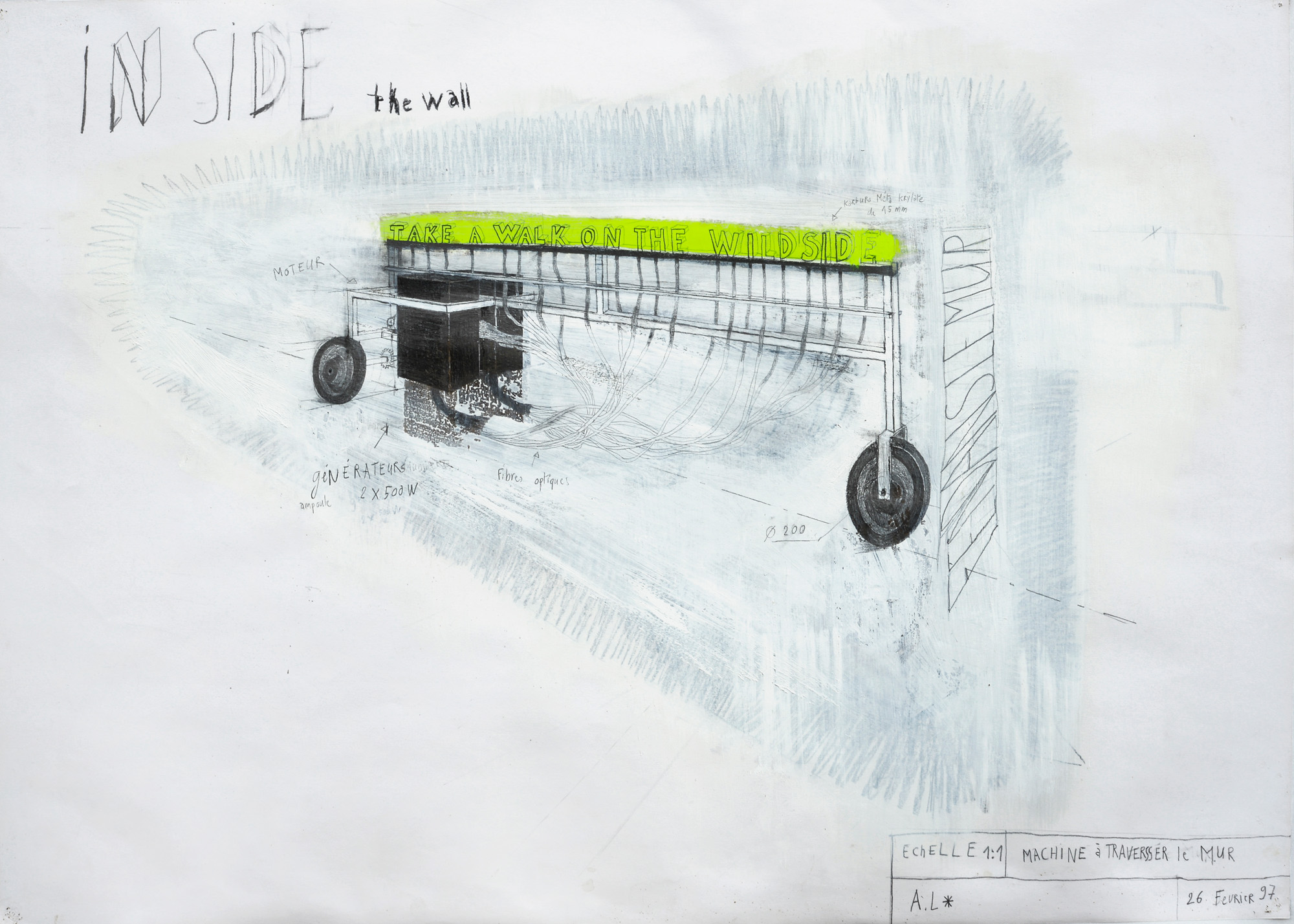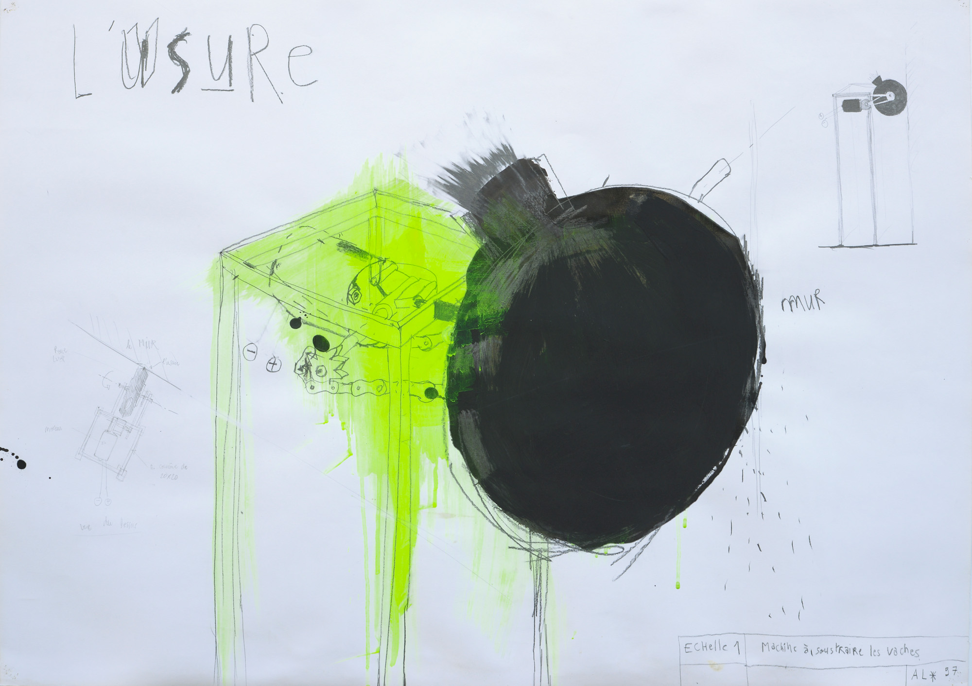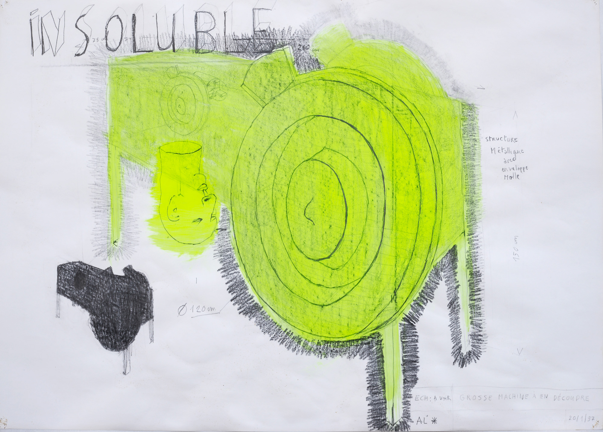Une série de dessins sur papier préfigurant les projets de sculpture machines.