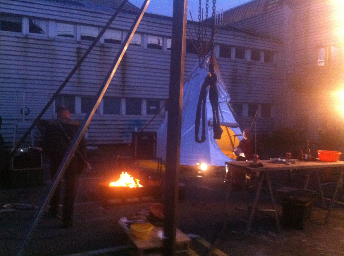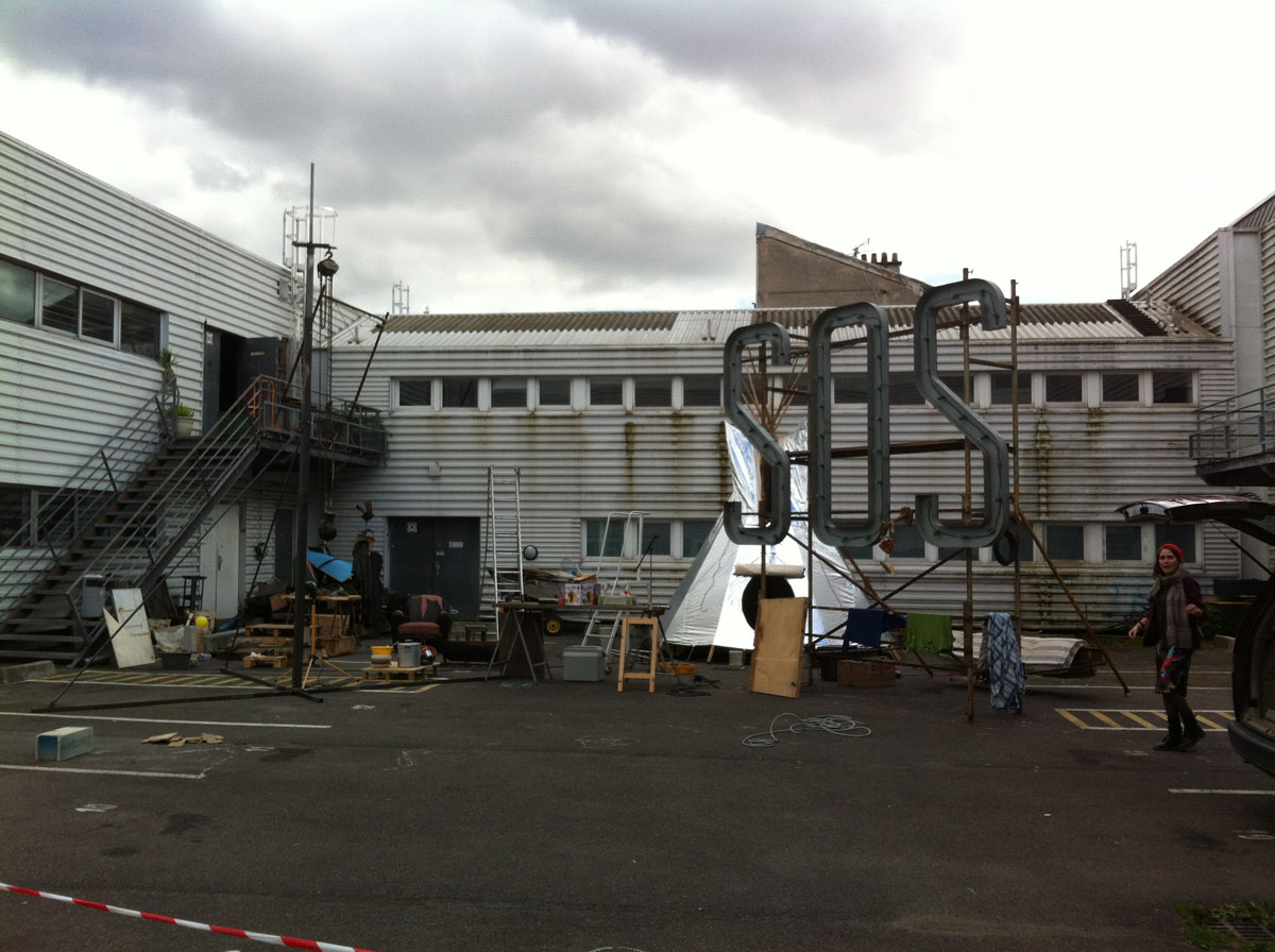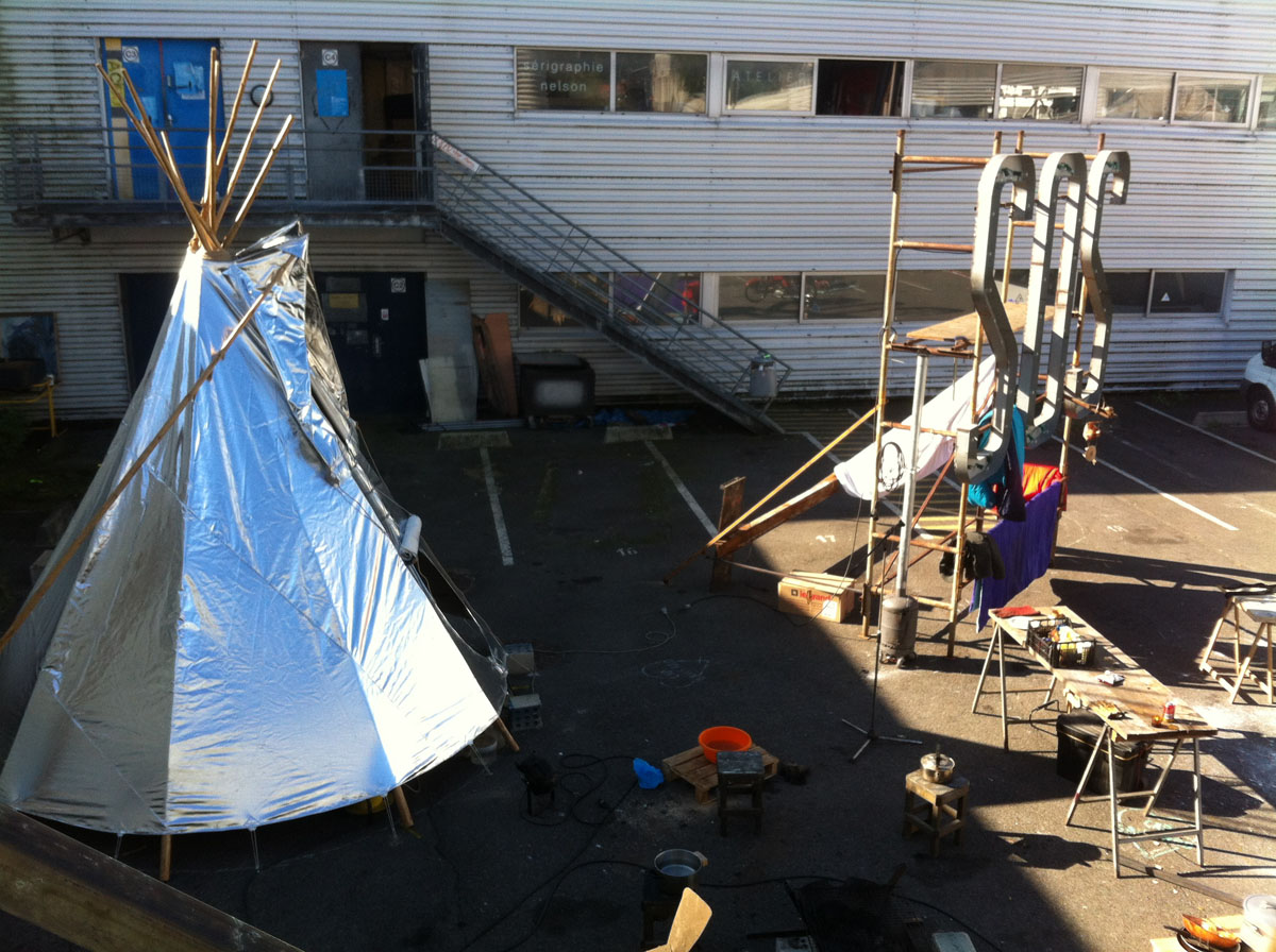 Actions, ou inactions pendant 72 heures a l’air libre durant les portes ouvertes de Montreuil. Lors de cet évènement j’inviterai divers amis a intervenir dans mon campement au milieu de cette installation sur le parking avec tipi , SOS ,feu de camp, amplificateurs ,matelas, micros,Flandria …