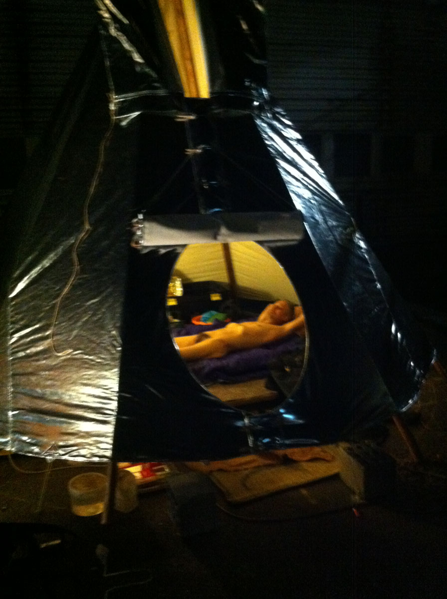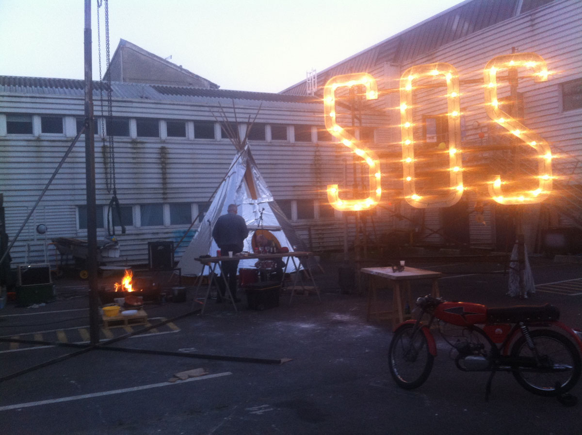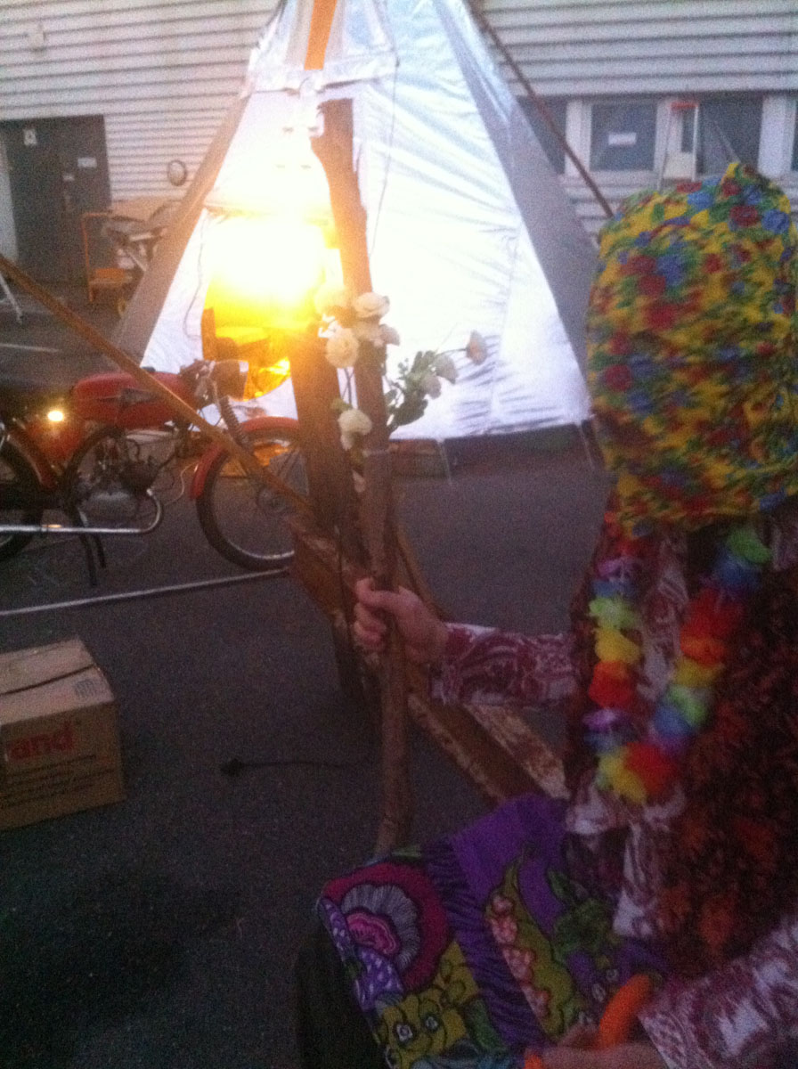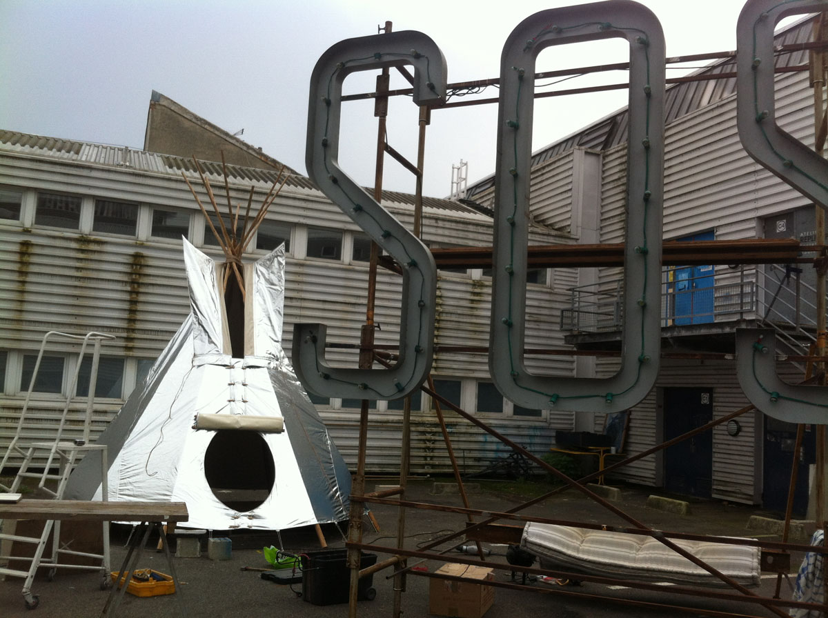 Actions, ou inactions pendant 72 heures a l’air libre durant les portes ouvertes de Montreuil. Lors de cet évènement j’inviterai divers amis a intervenir dans mon campement au milieu de cette installation sur le parking avec tipi , SOS ,feu de camp, amplificateurs ,matelas, micros,Flandria …